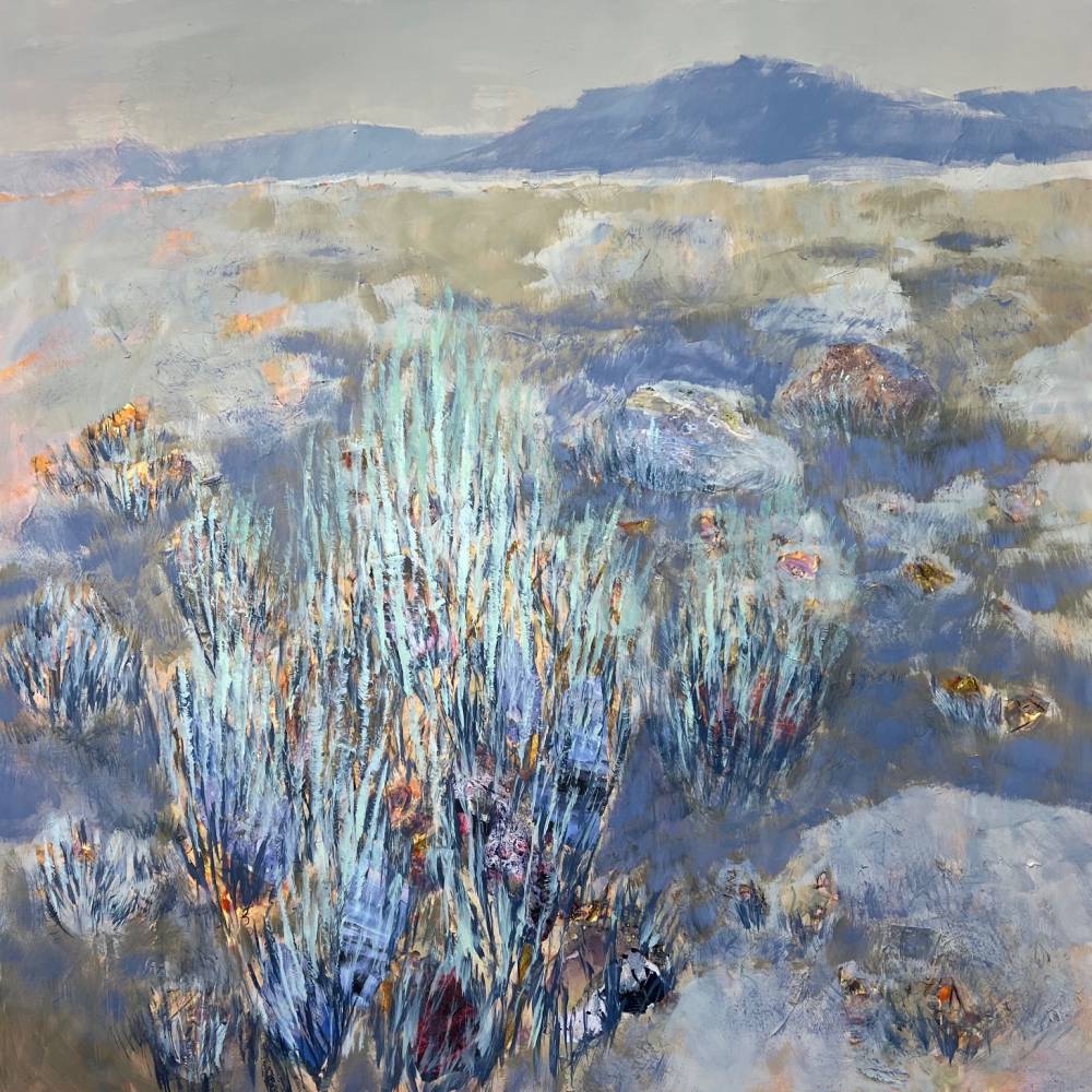 Martis Valley Sagebrush | 48″ x 48″ mixed media collage on canvas
